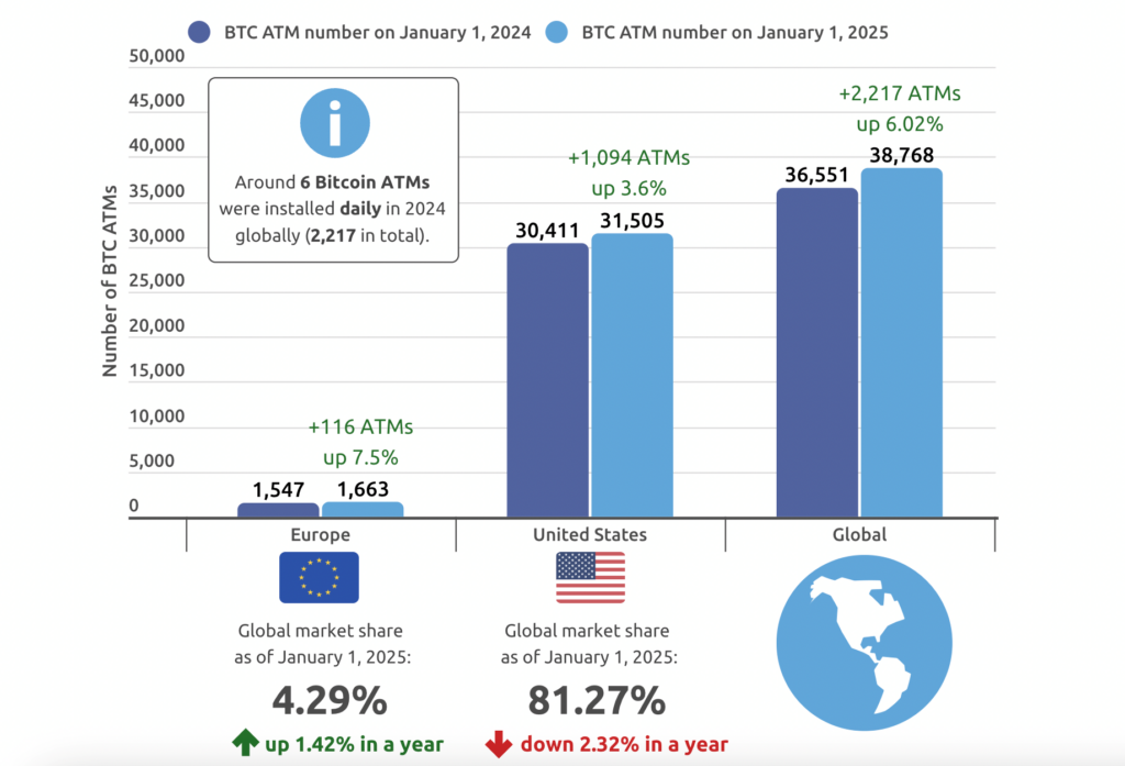 The report also revealed that Europe remains the only region with consistent growth in ATM numbers over the years, even during the “crypto winter.” Last year, Europe added 116 new machines, pushing its share to 4.3%.