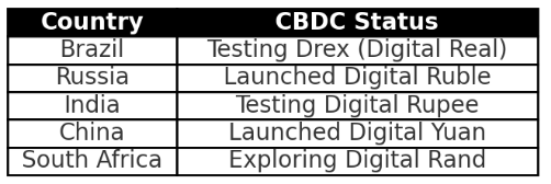 Zooming out, a pattern is becoming clear: BRICS isn’t planning to launch a new currency unit anytime soon, but its member states are all making moves to use digital currencies like BTC and Ethereum in trade. Most of them also have national digital currencies or central bank digital currencies (CBDCs) in various phases, with China’s digital yuan being the most advanced.